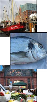 Hamburger Fischmarkt dafür, daß schon morgens die Händler heiser, die Käufer schwer bepackt und die Mägen gut gefüllt sind.