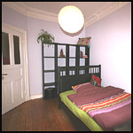 In dieser 3-Zi.-Wohnung finden Sie ein sehr gemütliches Schlafzimmer mit sonnigem Balkon mit 140cm breitem Doppelbett. Die voll ausgestattete Küche mit Geschirrspüler, E-Herd, Kühlschrank, Wasserkocher, Toaster und Waschmaschine darf nach Absprache mitgenutzt werden, das Duschbad wird mit der herzlichen Vermieterin geteilt. Internet ist vorhanden.